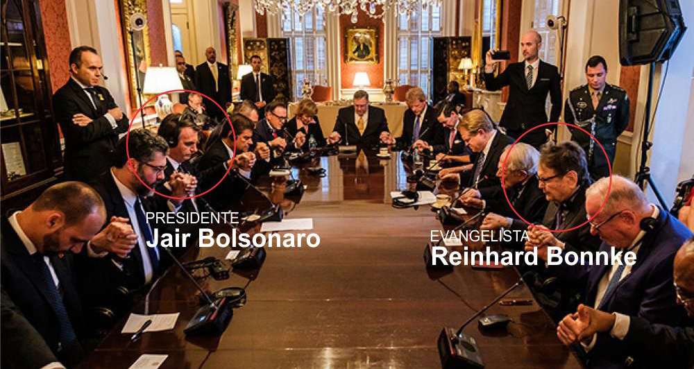 Após um período de reunião e conselhos foi feita uma oração: "Nós oramos, Senhor, para que a unção do Espírito Santo venha sobre ele (Bolsonaro), para que ele tenha sabedoria. Ele ouvirá uma voz em seu ouvido quando se virar para a direita ou para a esquerda, dizendo: 'Este é o caminho. Ande por ele'. Que o Senhor, defenda-o, proteja-o do mal e use-o poderosamente nos próximos anos", concluiu Pat Robertson, fundador da CBN (Christian Broadcast Network), de mãos dadas com o evangelista Reinhard Bonnke. Um fato histórico para nossa nação e para nós do ministério Cristo para Todas as Nações. Que honra o Senhor nos concedeu!